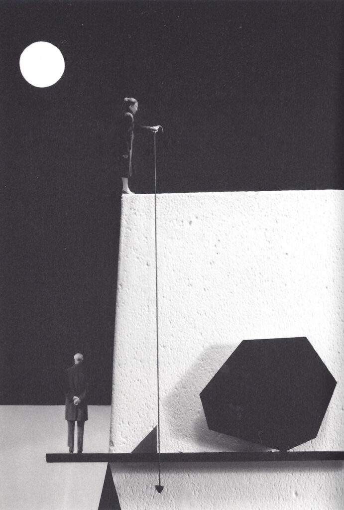 Un esistenzialista, che a Sartre sicuramente guardò e che il mito di Sisifo declinò in più versioni, affascinato continuamente dalla dimensione dell’onirico, del surreale. Surrealista in senso magrittiano, dunque, lasciando spazio a una sobrietà visiva scandita da poesia, da finezze concettuali, da accostamenti aggraziati e lievi. E scandita – come per Magritte, di nuovo – da ragionamenti intorno al senso dello stare al mondo, con la fatica del cammino, il non senso in agguato, la paura e l’attrazione per il vuoto, la dimensione dello spaesamento, la seduzione del perturbante, il mistero dell’amore, il desiderio per l’altrove, la spinta verso il cielo, la minaccia dell’alienazione e la profonda liaison tra la chiarezza del visibile e la potenza di ciò che non si vede.