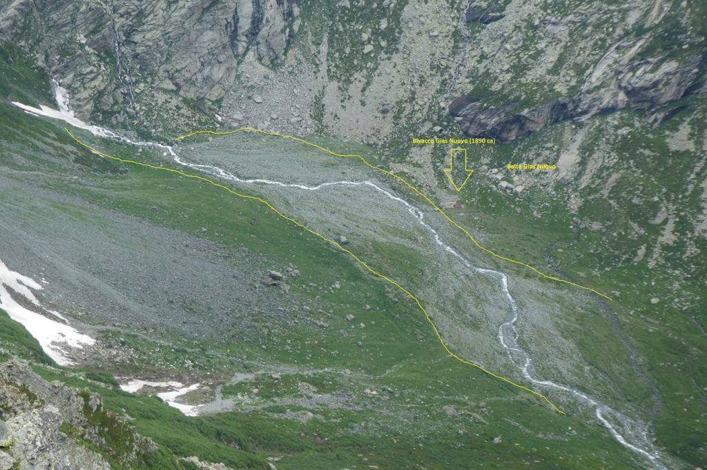 Se poi pensiamo che da un lato non è possibile prevedere con precisione l’intensità e la posizione di un temporale (vedere, ad esempio, quello che è successo qualche giorno fa a Bardonecchia, dove, nelle ore precedenti non veniva emessa nessuna allerta meteo), dall’altro è talmente breve il tempo che passa tra la precipitazione in testata e l’arrivo della piena (stante il breve tragitto da percorrere) che difficilmente ci si potrebbe mettere in salvo (che poi, sorpresi da un temporale, è spontaneo cercare rifugio proprio in un bivacco!). Dal mio punto di vista il bivacco Gias Nuovo andrebbe dichiarato inagibile (chiuso) e spostato in altro luogo.