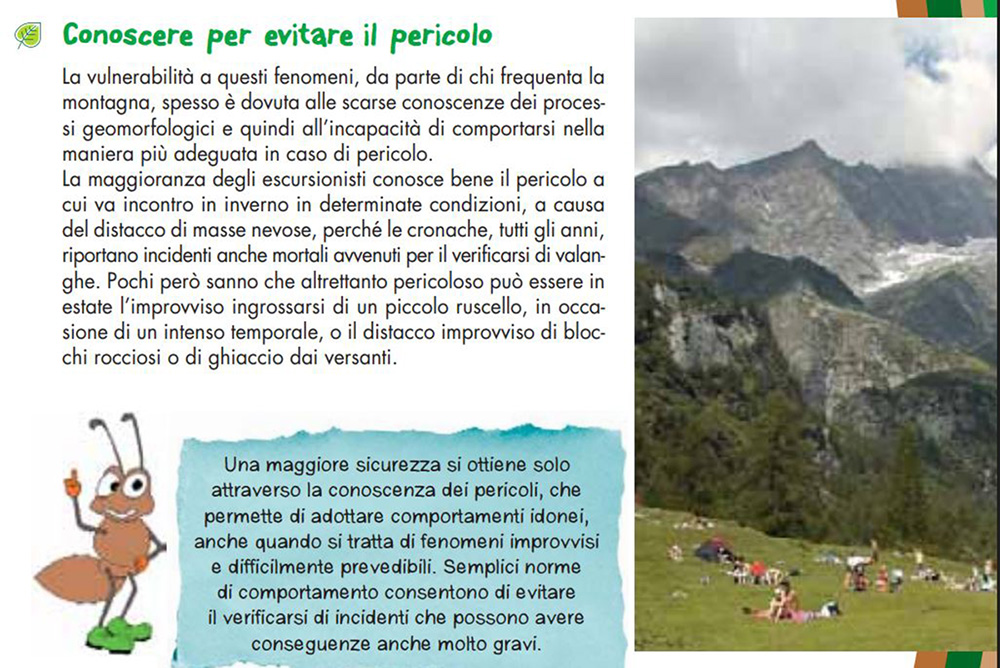 Un documento molto interessante e ben fatto, già citato in una didascalia di questo post, si chiama “Vivere la montagna. Impariamo a conoscerla per evitarne i pericoli“, a cura di Arpa Piemonte. Qui lo trovate in formato pdf.