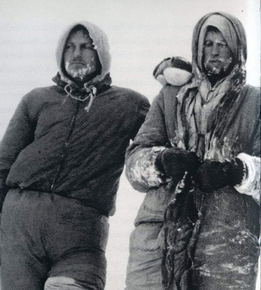 “Diceva che non ne poteva più! Voleva solo rimanersene seduto e morire” – ricorda Hupfauer. Lui, peraltro rispose a Votteler che non l’avrebbe abbandonato. Haston non si rese conto della ferita di Votteler quando arrivò al bivacco. Dai ricordi di Hupfauer e Votteler, Haston era troppo sfinito per riuscire a vedere che c’era qualcosa che non andava (circostanza che Haston ha omesso di inserire nel suo racconto della vicenda) e loro non gliel’hanno proprio detto. “Haston era completamente esausto. Riusciva a malapena a stare in piedi” – ci disse Votteler nel 2014. Dopo aver fatto spazio affinché Haston potesse mettersi steso sulla cengia, Hupfauer passò la notte stando in piedi, attaccato a un chiodo. Per tutta la notte, poi, continuò a muovere il braccio a Votteler, per evitare gli si bloccasse l’arto. “Sono cose che ti rimangono” – disse Votteler. Durante la scalata finale alla vetta Votteler risalì le corde con le jumar usando strenuamente l’unico braccio buono rimastogli, mentre Hupfauer lo teneva sotto controllo. Dopo cinquant’anni Votteler e Hupfauer sono ancora ottimi amici. In una delle fotografie di vetta del 1966 i due si tengono ambedue con il braccio sulla spalla dell’altro, con le teste che arrivano a toccarsi mentre si abbassano l’una verso l’altra, stagliandosi nel freddo sfondo grigiastro della neve.