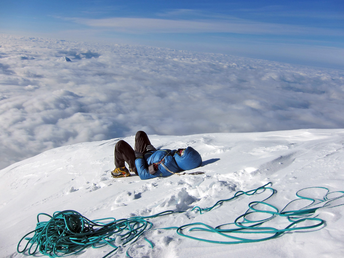 Più tardi quella mattina, dopo 31 ore di scalata, eravamo in cima al Foraker. L’ultima parte era stata un facile cammino su neve. Sorridendo mentre guardavamo i vicini Hunter e Denali, ci sentivamo felici ma ansiosi di scendere il più in basso possibile prima che il maltempo potesse sorprenderci.