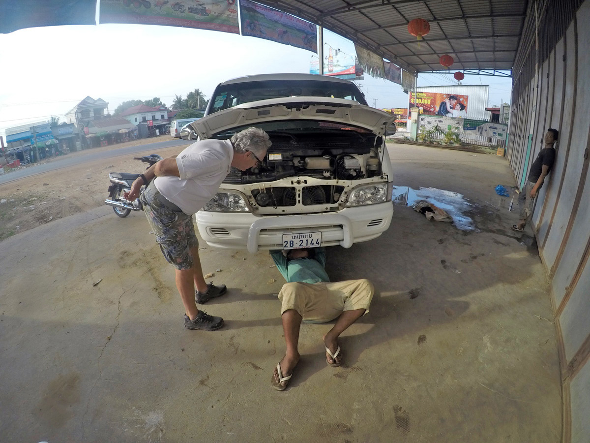 Andrea ed io facevamo continue spole verso l’officina per vedere a che punto eravamo e per valutare soprattutto se era il caso di prendere un altro taxi, visto che avevamo l’albergo prenotato a Phnom Penh, che la strada era ancora lunga e che la notte dopo avremmo fatto ritorno in Europa.