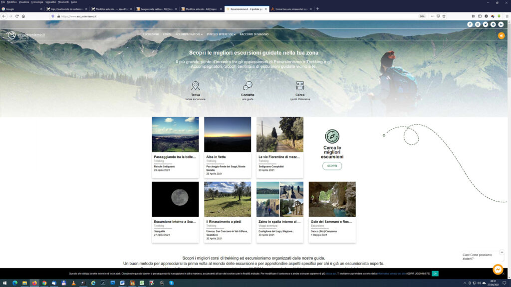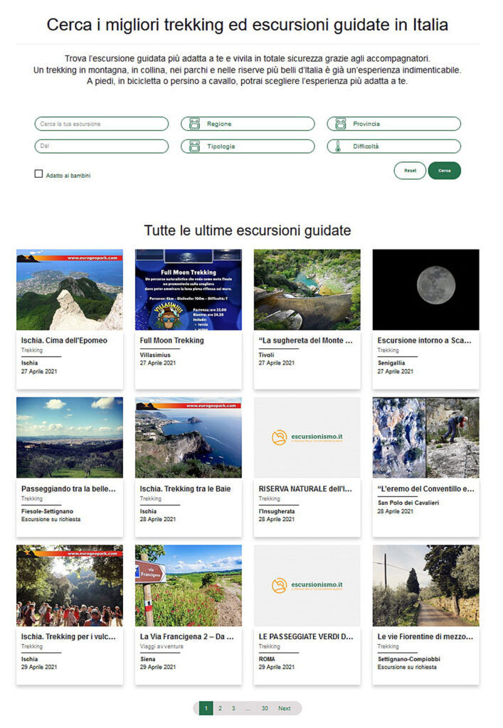 Già al primo sguardo si comprende immediatamente che il sito non è tanto subordinato alla quantità di proposte escursionistiche e alla loro descrizione quanto invece al servizio che viene fornito all’utente in quanto ogni itinerario suggerito è legato a un preciso accompagnatore. Naturalmente si possono utilmente consultare le pagine anche se non si ha intenzione di essere accompagnati: ma è evidente che il target cui il sito si rivolge è costituito dal grande numero di appassionati della natura e dell’outdoor che preferiscono la sicurezza dell’accompagnamento professionale o associativo. Non per nulla il motto del sito è “Il più grande punto d’incontro tra gli appassionati di Escursionismo e Trekking e gli Accompagnatori. Scopri centinaia di escursioni guidate vicino a te”.