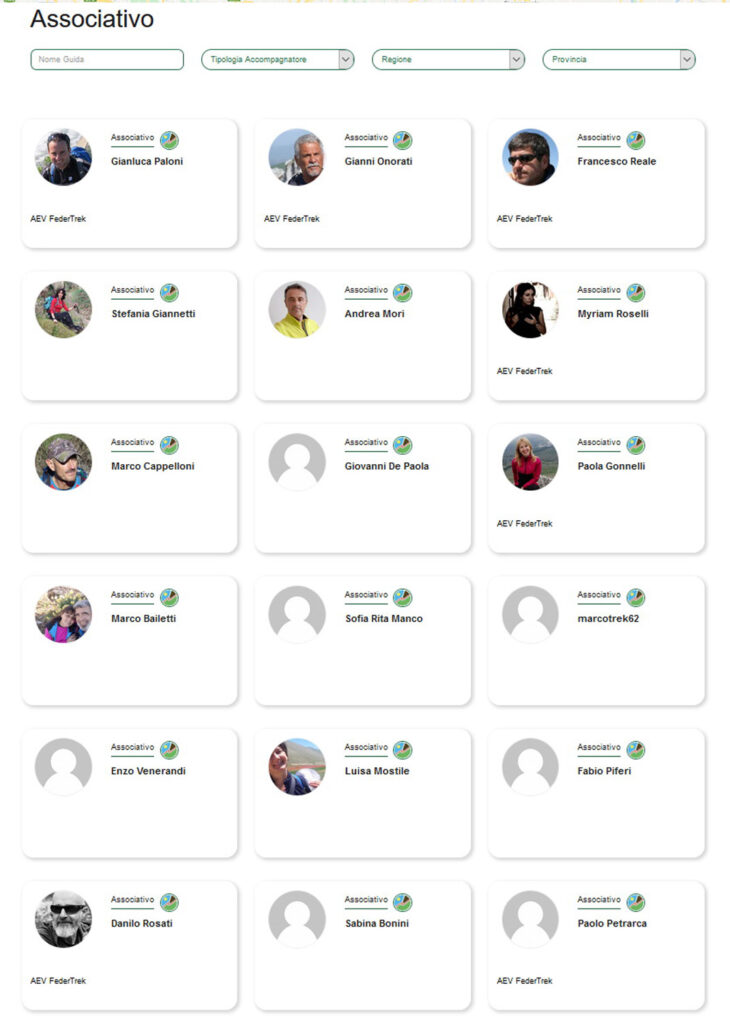 Altrimenti denominata “contatta una guida”, questa sezione è indubbiamente, assieme alla 1) Escursioni, il clou del sito. Dotata di ricerca a cinque possibilità (nome guida, regione, provincia, tipologia accompagnatore, categoria accompagnatore) elenca gli accompagnatori in modo assai lineare. Noi osserviamo che non è poi così necessario cercare l’accompagnatore in base alla sua qualifica (ci sono 35 titoli diversi tra cui scegliere, dalla guida alpina all’aspirante guida alpina e all’accompagnatore di media montagna; dalla guida ambientale escursionistica alla guida subacquea, speleologica; dalla guida ufficiale Parco all’istruttore orienteering e via elencando): molto più utile e pratico fare la ricerca in base a una delle quattro categorie dell’accompagnatore: professionale (3.297), associativo (241), associazione (319), impresa (17). Per un totale di 3.874.