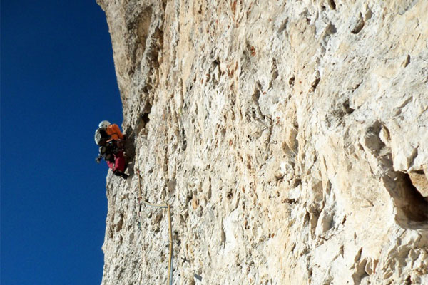 I tre protagonisti più significativi degli sviluppi dell’arrampicata dolomitica sono stati Heinz Mariacher, Maurizio Zanella (Manolo) e Maurizio Giordani, con il contributo determinante del cecoslovacco Igor Koller. La parete più corteggiata è stata la Sud della Marmolada, perché offriva le maggiori possibilità di sperimentazione. Una muraglia immensa, solare, di roccia compattissima, che in alcuni settori riproduce la conformazione calcarea delle falesie di bassa quota. Una parete su cui erano già passati i più bei nomi dell’alpinismo dolomitico del Ventennio, da Vinatzer a Micheluzzi, da Soldà a Castiglioni. Sui suoi eccezionali muri lavorati dall’acqua si è potuta spingere l’arrampicata a livelli crescenti, facendo tesoro della preparazione atletico-sportiva maturata sulle piccole pareti di fondovalle.