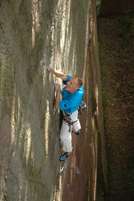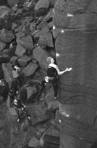 Ho fatto più di 106 vie di E6 o più dure (solo 2 onsight!) ed all’epoca erano tutte favolose. Non salgo da primo una via se non mi fa scattare la scintilla. Le vie per le quali ho sempre detto che non mi avrebbe disturbato non salire di nuovo, finché non l’ho fatto, sono state Unfamiliar a Stanage e Living a Oxford Burbage (ambedue E7).