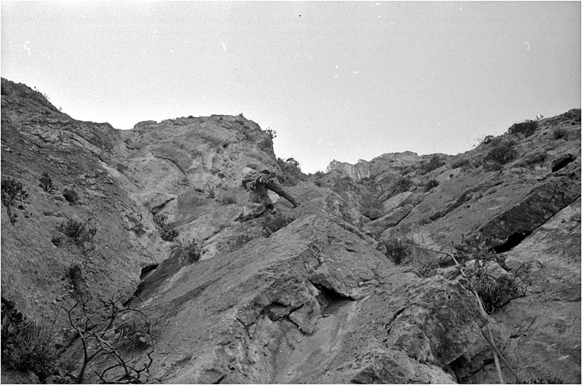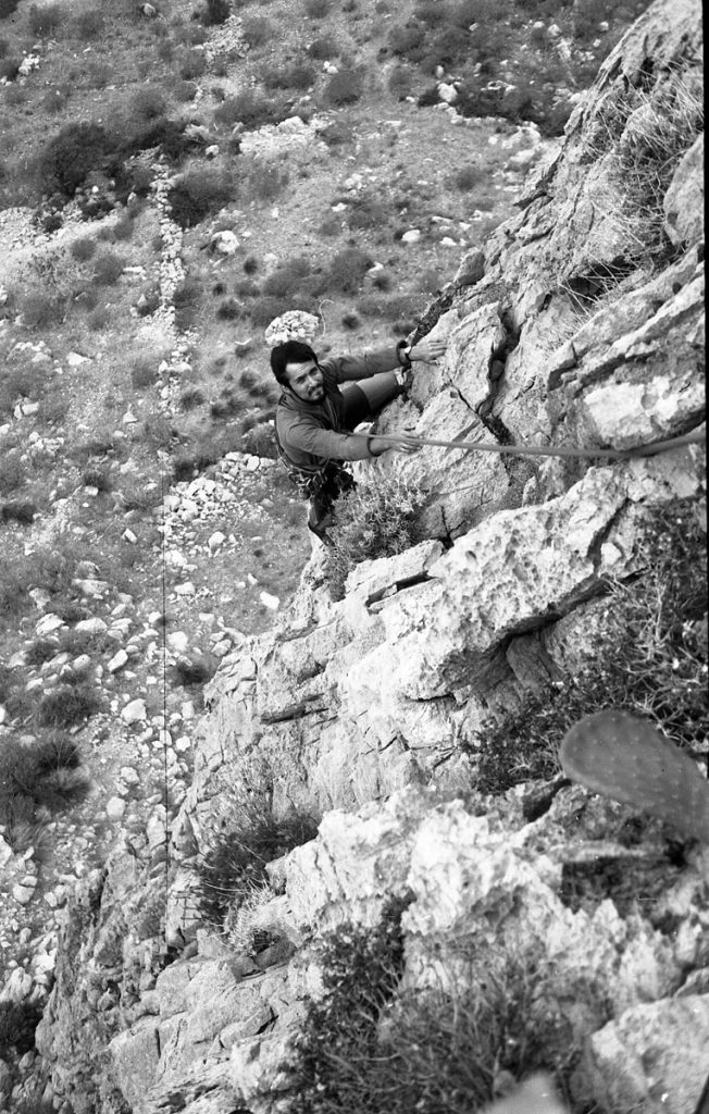 E siccome è più facile preservare che ripristinare, si potrebbe segnalare l’esistenza di altre quattro vie aperte dai valtellinesi nella stessa area di San Vito Lo Capo: lo spigolo Pecolla alla Quota 482 m di Monte Sauci (salito slegati in scarpe ginniche), Odore di Sassista bruciato alla parete sud di Pizzo Castelluzzo, Il Gioco del Falco alla Fortezza delle Rocche del Tuono ed Erbocid al Bastion Contrario delle Rocche del Tuono. Potrebbero non esserci limiti in questa operazione, solo sul Pizzo Monaco Chiari di Luna, Boomerang, Madre de Dios sono tre gli itinerari di Roby Manfrè e compagni che non possono essere dimenticati così, almeno in rispetto alla sua memoria. Per non parlare della via del Trio (porno) pastorale, a sinistra di Madre de Dios. Questa merita una citazione a parte, Popi Miotti mi ha raccontato che, mentre era impegnato nel primo tiro, già difficile, tre pastori si sono avvicinati al compagno Carlo Pozzoni e gli hanno attaccato discorso. A un certo punto uno tira fuori una rivista porno e gli chiede se al Nord si fanno davvero quelle cose lì… Pozzoni dopo aver a lungo sbirciato risponde di sì, il discorso prende una piega ben precisa e alla fine i tre pastori esclamano di voler emigrare! Miotti ricorda anche la terza lunghezza, una delle più impegnative che lui abbia mai affrontato a causa della difficoltà di protezione… ma forse anche per altri pensieri».