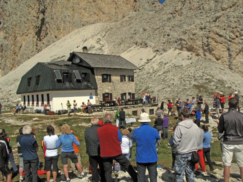 Verso fine agosto ci concedemmo una prima uscita in quel di Entrèves, dai Sicola e dai Bianchi. Riuscii perfino ad arrampicare un po’ con Papik Villa e Isabella Bianchi. Il 26 agosto ero con Guya in Tofana. Presa la funivia, salii fino alla Tofana di Fuori per controllare dove eventualmente la gestione della Marmolada-Tofana SpA avesse gettato i rifiuti nei vari decenni. Il dubbio era che avessero agito come in Marmolada… E invece non trovai nulla. Il 28 agosto con Guya, partendo dal rifugio Micheluzzi in Val Duron, andammo a trovare Almo Giambisi che da anni faceva il custode del rifugio Antermoia. Era il Centenario della costruzione del rifugio, Almo aveva invitato un po’ di amici. Cose semplici, che mi rimettevano in quadro con il mio mondo.