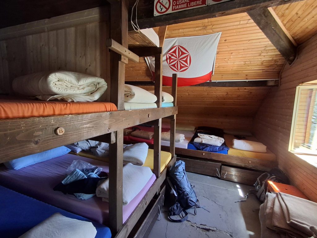 Il rifugio dispone ufficialmente di 15 posti letto (però, stringendosi, si può arrivare a 18-20, più il bivacco esterno), situati al primo piano in una piacevole camerata.