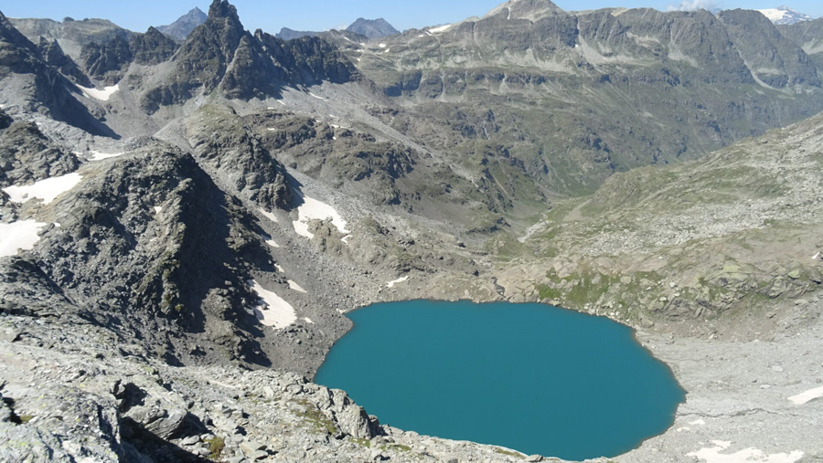 Quando la razionalità riprende il controllo dei nostri pensieri, dalla riva del lago l’attenzione non può che focalizzare le misere placche di neve cui si è ridotto il Ghiacciaio dell’Agnello. E pensare che tale ghiacciaio in epoche passate fu temibile: un altro pioniere dell’alpinismo torinese, Antonio Tonini, nel 1860 rimase vittima dei postumi mortali della caduta in un crepaccio a campana. Purtroppo gli altri componenti della comitiva non disponevano di corde adatte per tirarlo fuori, così dovettero scendere a valle per procurarsele e poi risalire, ma nel frattempo Tonini era già deceduto.