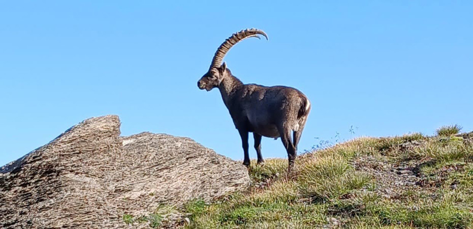La presenza di tanti stambecchi, almeno comparandola con i miei ricordi più lontani, è una piacevole novità e mi ha particolarmente incuriosito, spingendomi a rifletterci sopra. Senza il sostegno di alcun dato scientifico, mi sono costruito un film che però mi affascina moltissimo: ho immaginato che alcuni stambecchi del Gran Paradiso, stufi del sovraffollamento antropico in quelle vallate, siano dapprima sconfinati nel limitrofo Parc de la Vanoise, percorrrendolo poi in direzione ovest. A un certo punto sono scesi nel fondovalle e, magari nelle mezze stagioni senza tanta gente in giro, hanno attraversato la statale, risalendo l’altro versante verso lo spartiacque di confine e si siano infine stanziati da queste parti, attirati dalla tranquillità dei luoghi.