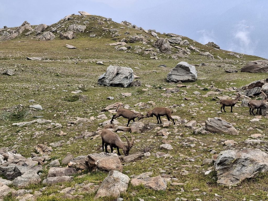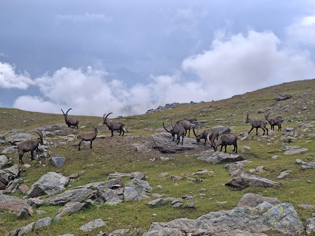 Tornando alla frequentazione estiva di queste montagne, c’è un terzo risvolto che mi colpisce: il vero signore dei questi luoghi è diventato lo stambecco. Frequento queste vallate da quando erano ragazzo, anche se non con assiduità sistematica, ma non ricordo, nella versione di 4 o 5 decenni fa, una tale abbondanza di stambecchi. Qualche camoscio lo si vedeva anche allora, spesso fuggiva sulle lontane creste, con la sua tipica andatura agile e scattante. Ma stambecchi non me li ricordo, specie in così gran numero.