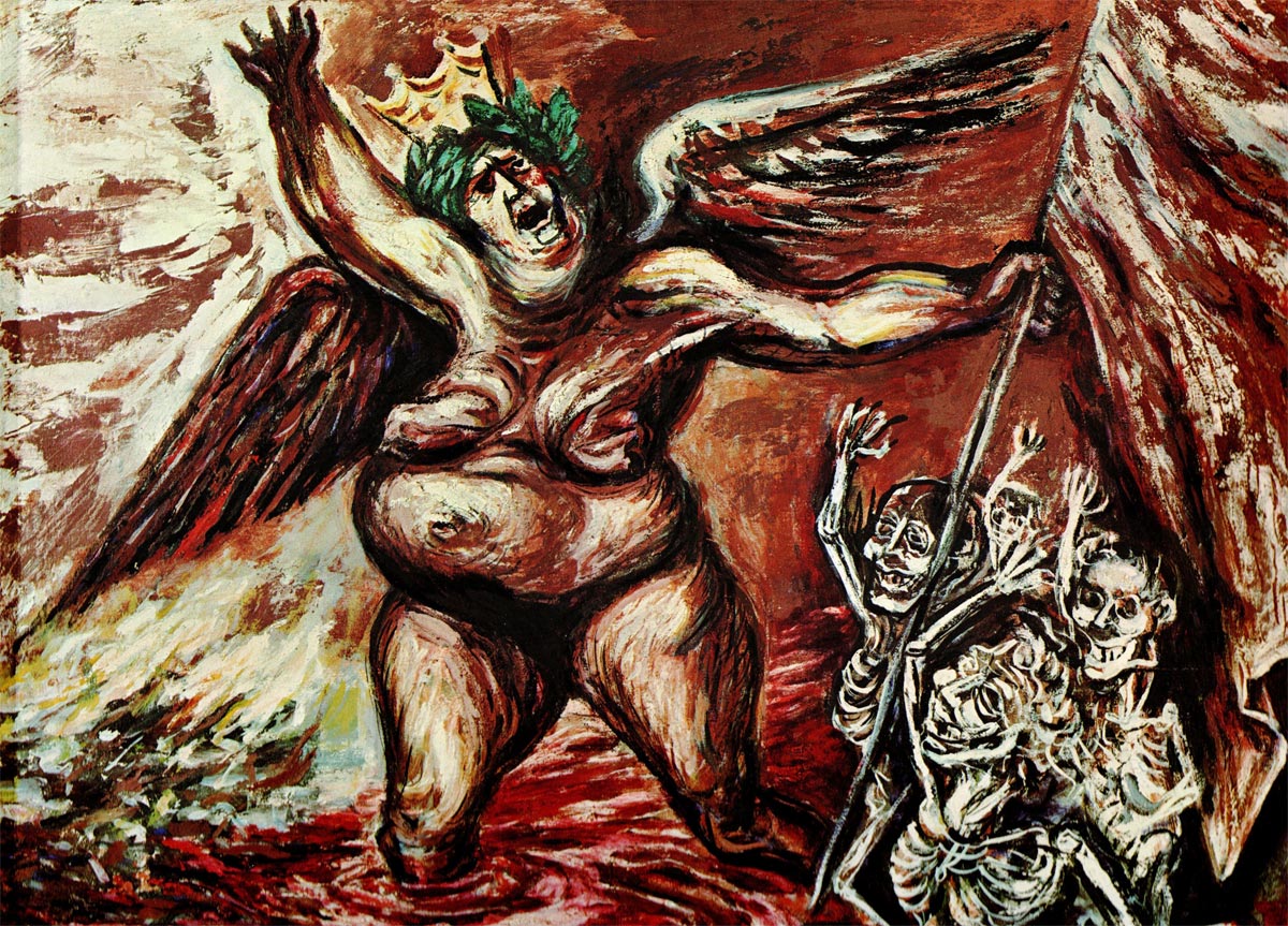 Quando Netanyahu ha dichiarato che vuole andare avanti fino alla vittoria, ad Antonio Bernard è venuto in mente il quadro che il pittore messicano José Clemente Orozco dipinse nel 1944 per raffigurare la vittoria alata, simboleggiata tradizionalmente da una donna che vola sopra le terre annunciando l’orgoglio e la gioia per la vittoria finalmente raggiunta. Con i piedi nel sangue e tra scheletri inneggianti.