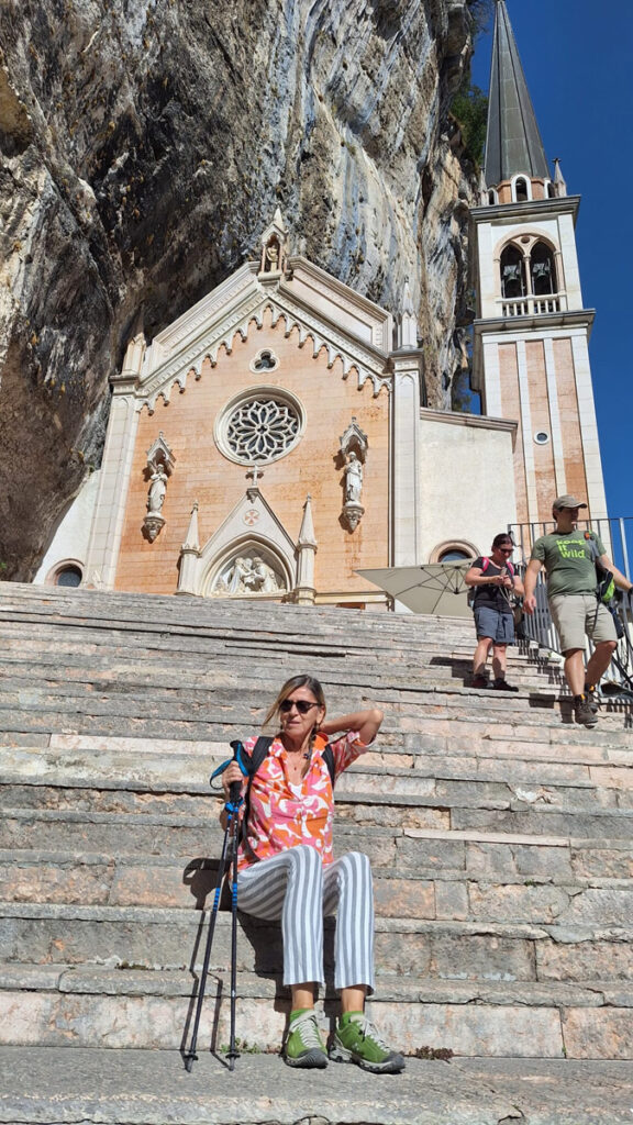 Dopo di che possiamo avviarci verso il Santuario, muniti di bastoncini. Meta di pellegrinaggio ormai da secoli, siamo stati informati dei 1752 gradini che compongono la mulattiera di accesso, con circa 600 metri di dislivello.