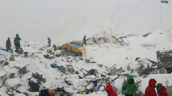 E qui, al campo base che accoglie le spedizioni che arrivano da tutto il mondo per tentarne la salita, gli alpinisti presenti vengono travolti da un’immensa valanga che lascia sul terreno 18 morti.