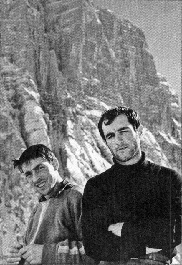 Sono impegnati sul Torrione San Vito, un contrafforte del Re del Cadore, a rigore una cima minore che incombe sull’imbocco dell’Antermoia: ma tale aspetto presenta scarsa rilevanza, ciò che davvero conta è che hanno superato difficoltà costantemente appartenenti all’orbita del sesto grado. E per di più rallegrati dall’età spensierata, quanto dalle irresistibili battute di Emilio, capace di tenere alto all’occorrenza l’umore della cordata. Della quale, in ogni caso, rimarranno proverbiali nel tempo, oltre alla bravura, qualità mai abbastanza apprezzate come modestia e semplicità.
