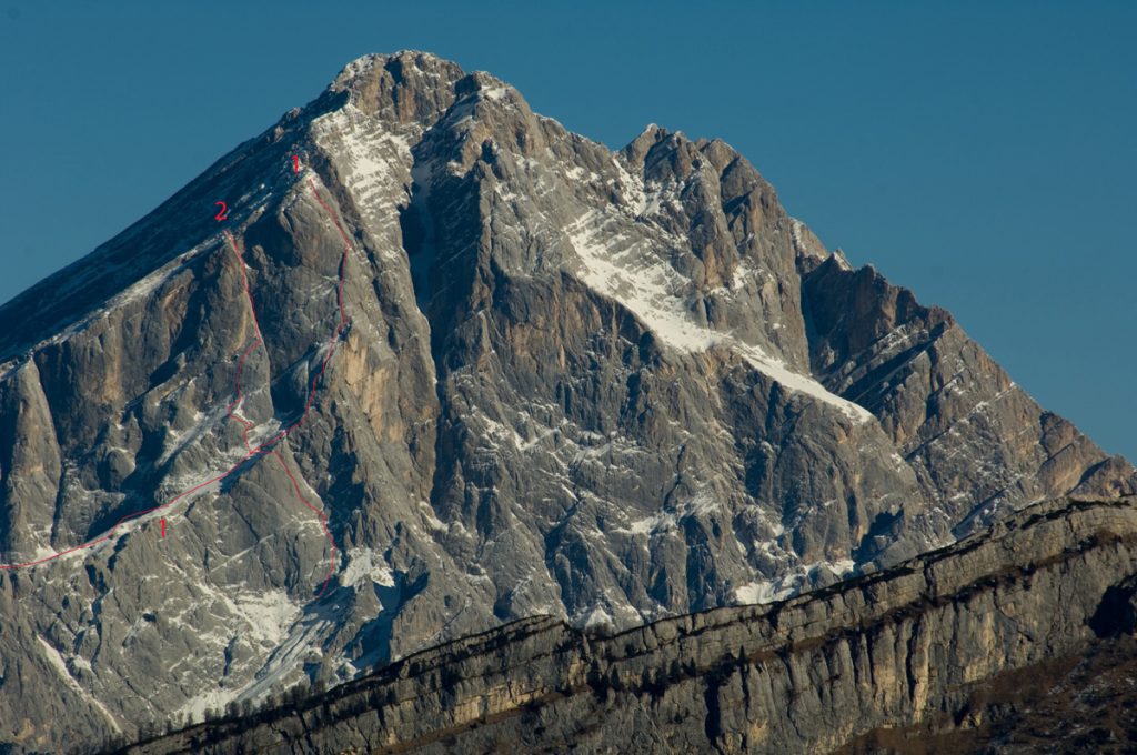 Cos’è che li ha spinti ora in Cadore? Gli interessati si erano accorti che «tra le vie Bee e Bettella-Scalco esiste una bella porzione di parete ancora libera». Libera sì, diremmo noi, ma dalle rilevanti problematiche, visto che i tre incontreranno difficoltà dal IV all’incredibile IX e A2.