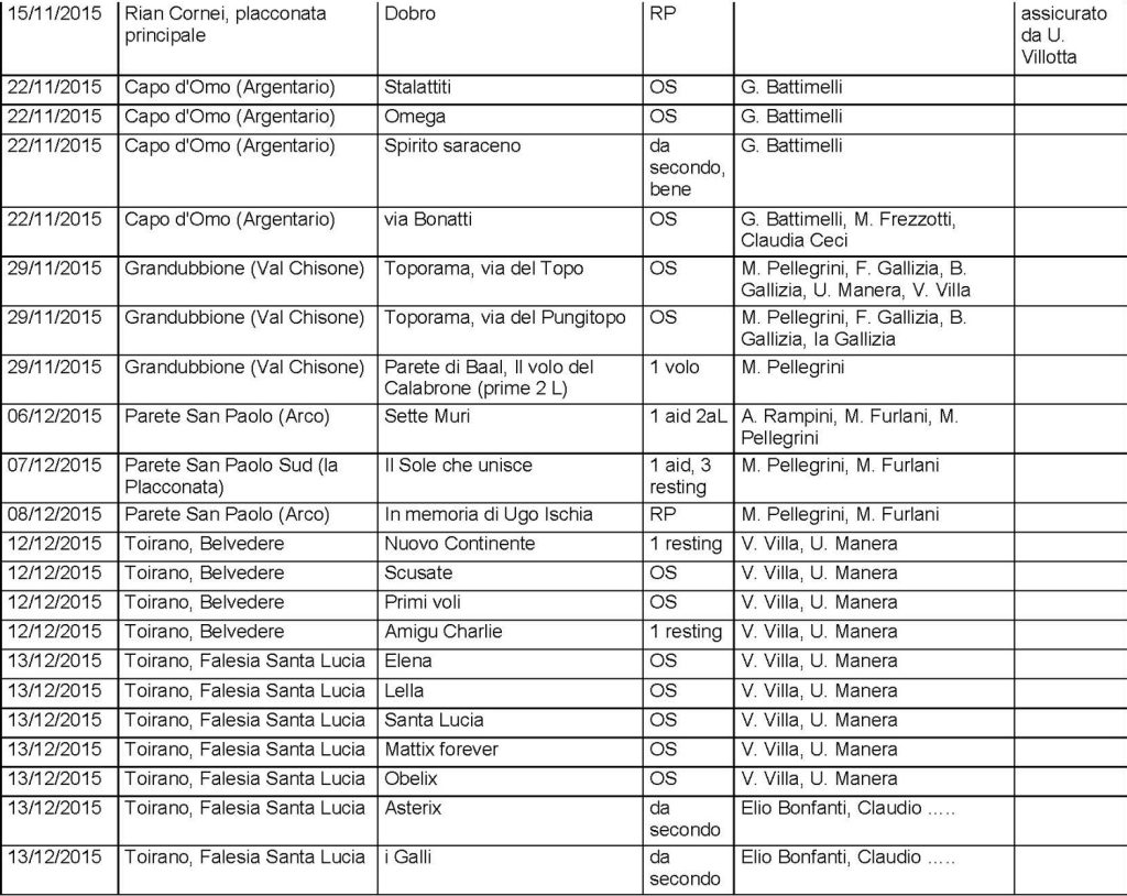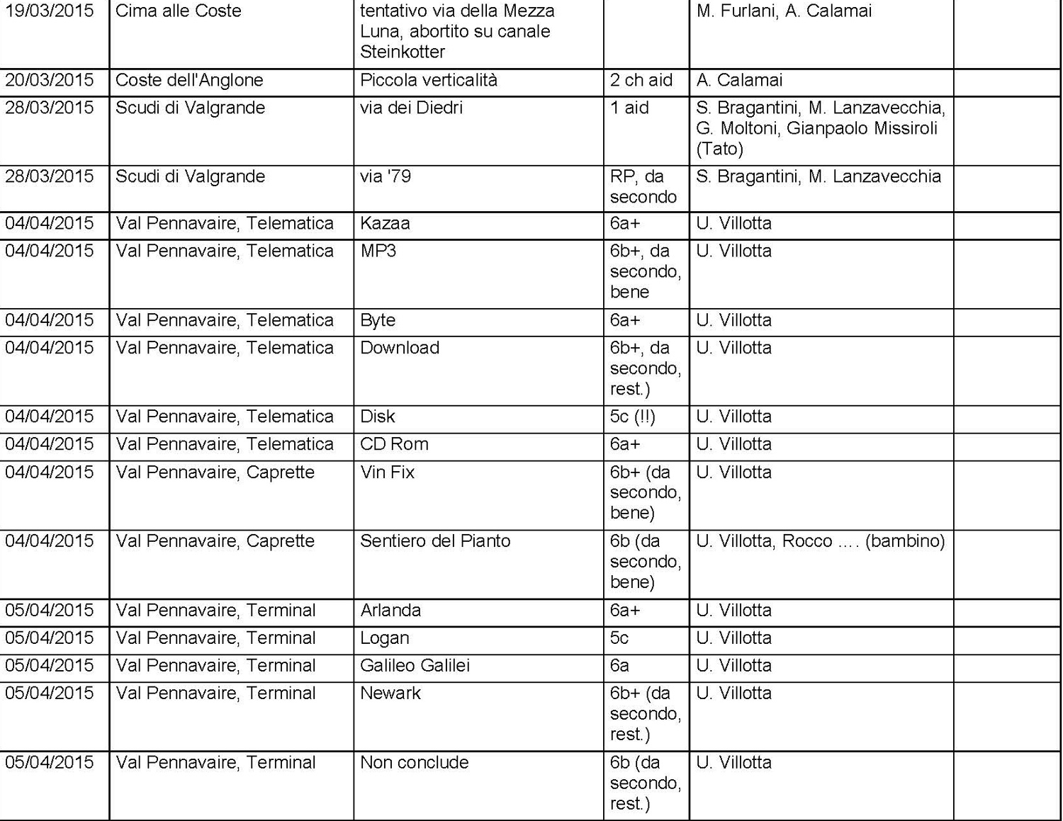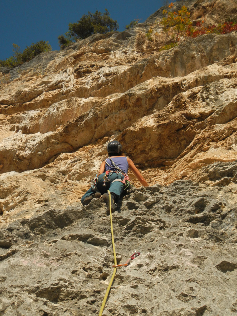 Dal 4 al 6 aprile, in occasione delle vacanze pasquali, Guya ed io andammo assieme a Umberto Villotta e Chiara (e con il piccolissimo Francesco) ad Albenga, in Val Pennavaire, dove ci spellammo per bene le dita per tre giorni sulle locali falesie. Ci sembrava un po’ strano il rapporto tra i due genitori, e ancor più quello tra papà e figlio. Ma l’anomalia non lasciava prevedere le brutte modalità della separazione che ci fu in seguito.