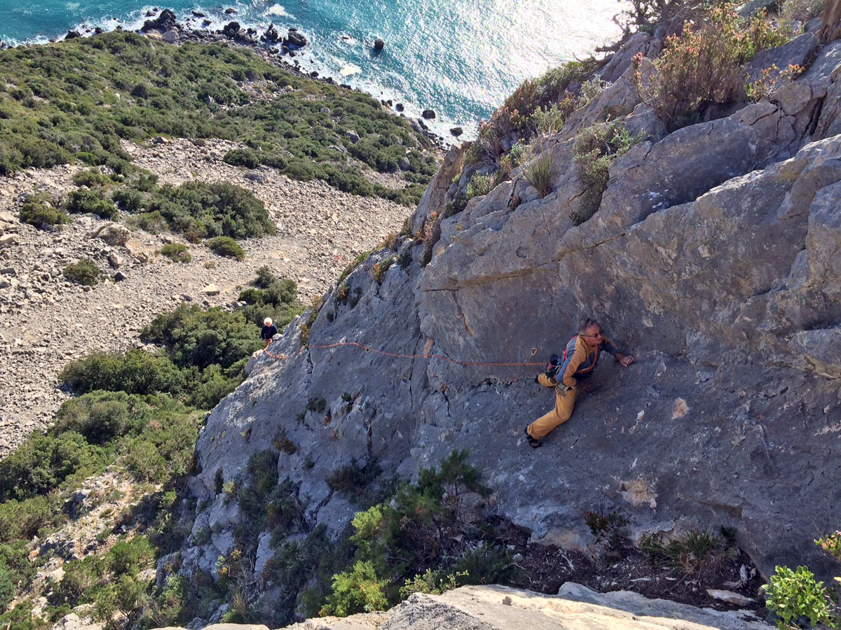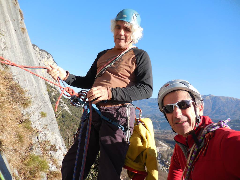 Gianni Battimelli, assicurato da Alessandro Gogna, sulla via Bonatti all’Argentario, 22 novembre 2015