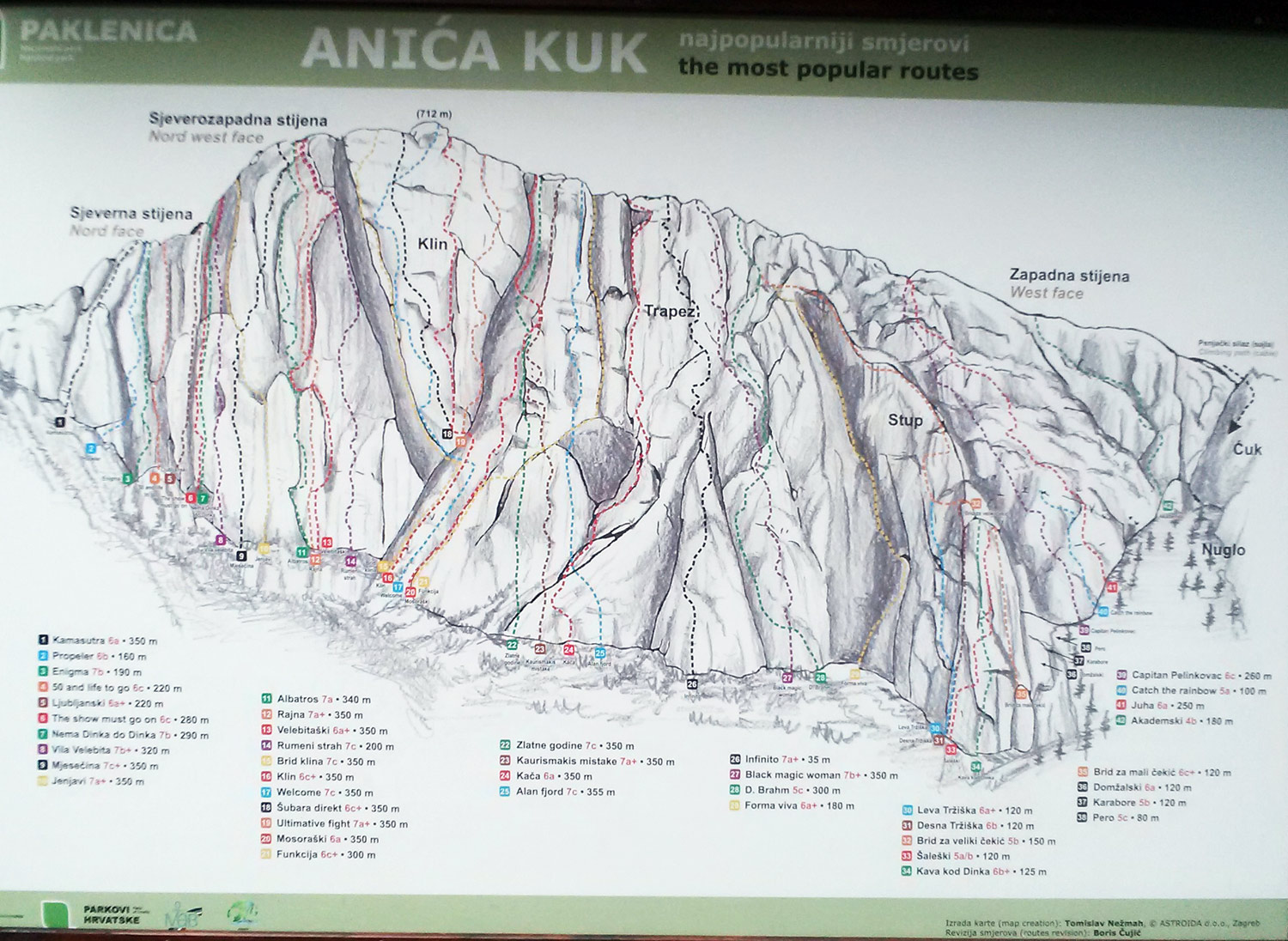 Le pareti nord, nord-ovest (Stup) e ovest dell’Anića Kuk