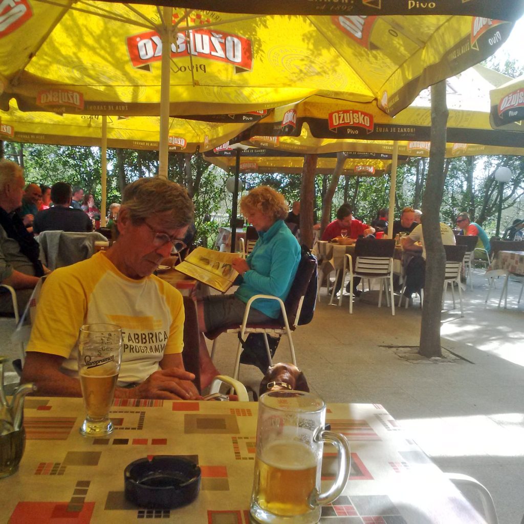 Salvatore ed io eravamo quindi abbastanza allenati quando ci mettemmo in macchina con meta la mitica Paklenica, dove né lui né io eravamo mai stati. Arrampicare da quelle parti, specialmente a livello medio-basso come il nostro, dava la sensazione particolare d’essere in un luogo che, pur essendo parco nazionale, non s’imponeva tanto per la sua indiscutibile bellezza selvaggia quanto per l’alone di quella storia che i locali arrampicatori avevano scritto lì come anche sulle più alte e difficili montagne del mondo (valga per tutti il nome di Franček Knez). Salva ed io facevamo base in un dignitoso alberghetto di Starigrad, sulla costa, dove stavamo tranquilli e riveriti. Già la prima sera mi ero accorto che la stanza non aveva delle prese elettriche adatte alla spina del cavo di alimentazione del mio pc portatile: problema risolto la sera dopo quando il proprietario, che giornalmente si recava a Zara, mi consegnò l’apposito adattatore da lui acquistato.