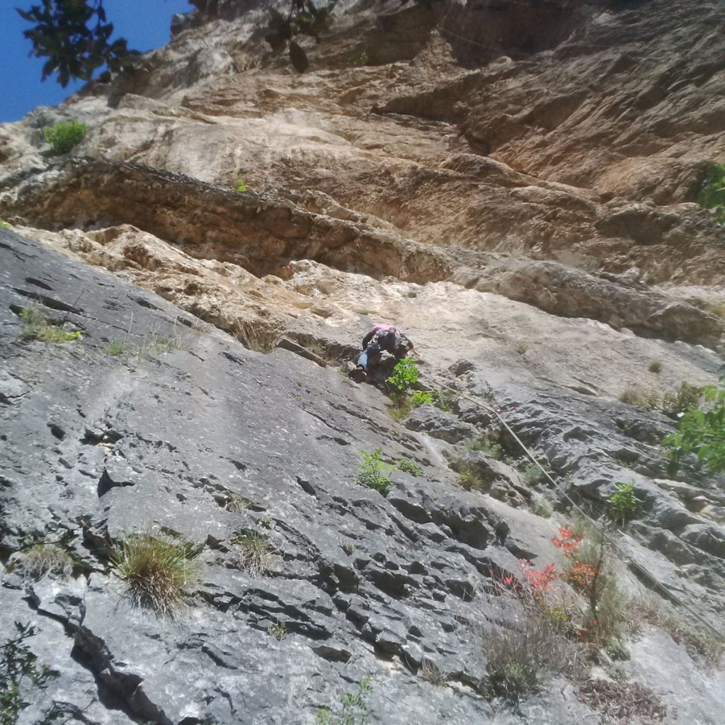Il 17 maggio mi legai con Salvatore Bragantini per salire Hasta siempre Comandante al Croz dei Pini di Monte Casale. Seguivamo gli amici Stefano Michelazzi e Marco Furlani, i quali non ci aspettavano. Alla Sosta 5, vedendoli ormai tre tiri al di sopra di noi, mi girarono i coglioni e decisi di scendere, in pratica un ordine che davo a Salvatore. Che non era del tutto d’accordo.
