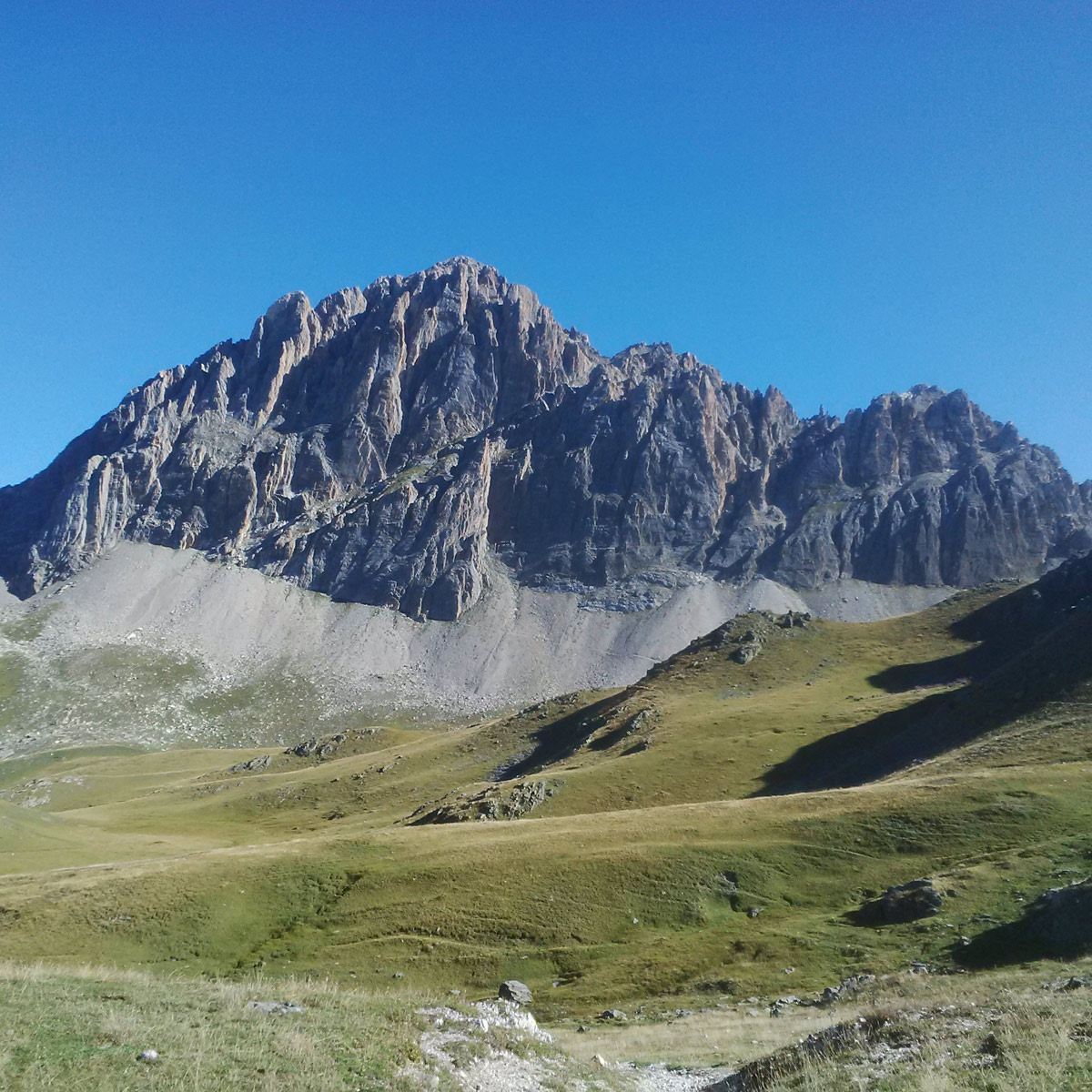 Solo il 29 agosto mi risolsi a fare un’altra gita: questa volta alla Rocca la Meja, tra la Valle Stura e la Val Maira, nel Cuneese. Il viaggio con Matteo Pellegrini fu lungo, con la BMW anche complesso nell’ultimo tratto, ma alla fine ci ritrovammo molto in quota, in bella vista di quella meravigliosa montagna che letteralmente sembra emergere dai prati. Dormimmo in auto e la mattina dopo ci avviammo a scalare la stupenda parete sud per la via Eterni Peter Pan. Con noi erano anche quattro simpatici ragazzi di Cuneo, Alberto Pacellini, Valerio e Michele Mattiauda e Alice Cavallera.