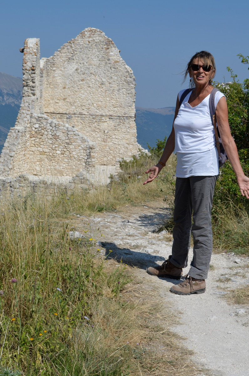 Dal 17 al 24 luglio mi recai con Guya al Gran Sasso. Con noi era anche la Pussy. Eravamo ospiti dell’amico e maestro di sci Paolo De Luca che gentilmente ci aveva messo a disposizione un suo appartamento nel centro storico di Pietracamela. Sarà che l’atmosfera dell’intero paese era molto cupa a causa delle numerose case chiuse per via del pericolo di crolli in seguito al terremoto del 2009, ma Guya in quella casa denunciava una strana sensazione di pericolo e minaccia, cosa che, sosteneva, anche la Pussy avvertiva. A dispetto della generale comodità dell’ambiente. In quella settimana facemmo numerose gite a piedi, sia sul Gran Sasso che nei Monti della Laga, e fu tempo piacevole. Fummo impressionati assai dalla visita alla città di L’Aquila, che a sei anni dal terremoto era ancora o inagibile o un cantiere. Di normale c’era poco, anche se s’imponeva quella bellezza che aveva resistito alla furia della terra.