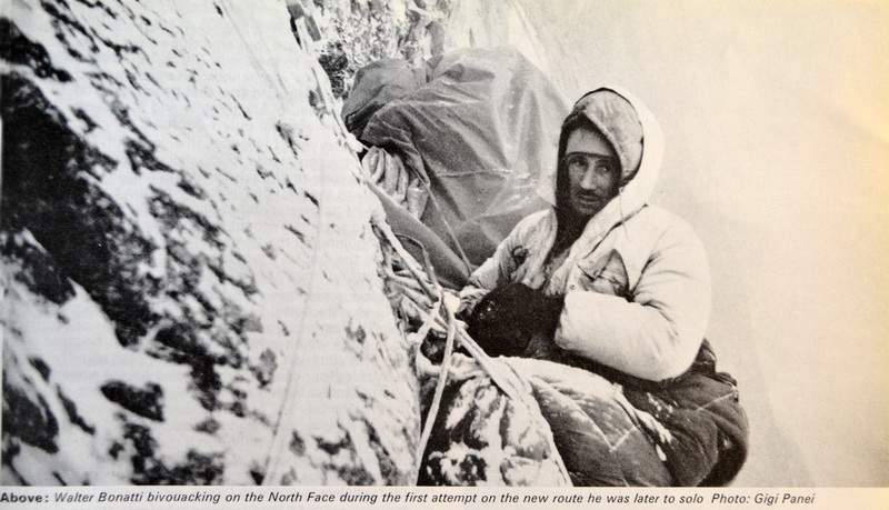 La direttissima alla parete nord del Cervino non è stato mai un problema sentito. Forse perché in anticipo alla normale fantasia degli alpinisti. E infatti fu proprio il migliore di tutti, Walter Bonatti, che la concepì. Ma andò oltre, volle vincere la parete d’inverno, dove già altri lo avevano preceduto. E per di più nel centenario della conquista della montagna. Doveva essere l’ultima sua scalata e fu una grande idea. Unico appunto: l’illogicità di attaccare d’inverno una via nuova. Ma Bonatti non era già forse salito da solo sul pilastro del Dru? Non aveva già confermato di essere la perenne eccezione? Con Alberto Tassotti e Gigi Panei attacca il 10 febbraio lo stesso itinerario di Imboden e Mooser. Il tentativo dura 4 giorni, poi il maltempo li respinge. Rimasto solo a Zermatt, Bonatti concepisce il disegno eccezionale di salire da solo. Anche se, come lui apertamente ci dice nel suo libro, prese la decisione in relazione all’ambiente giornalistico, che già «pompava» un così clamoroso insuccesso, e in relazione alla paura che qualcuno attaccasse la «sua» via (per poi riuscire dove Bonatti aveva fallito), questa è l’affermazione di un ideale associato ad una capacità pratica, entrambi fuori dal comune. Il 19 febbraio inizia la grande prova di un uomo solo, alle prese con una montagna terribile, nelle peggiori condizioni, solo di fronte alla sua propria terribile volontà. Il 23 la conclusione, la vetta.