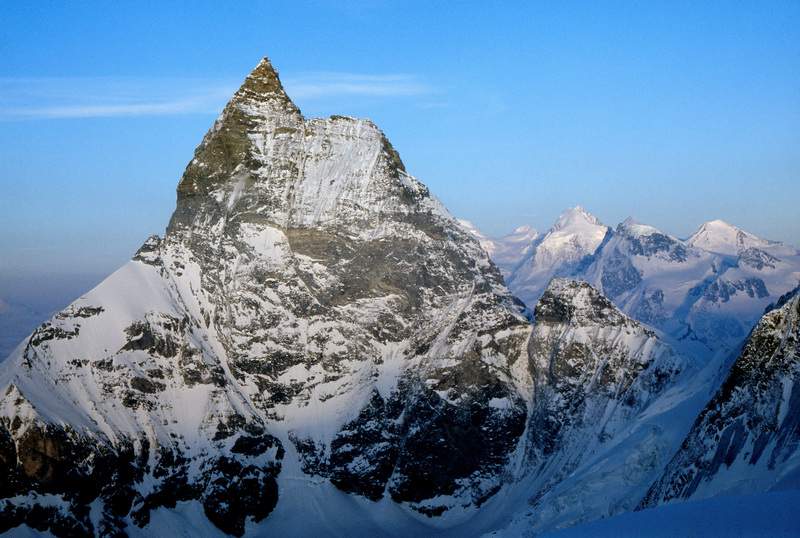 La seconda parete invernale fu la Est, nel 1959 (25 e 26 aprile): Stanislaw Biel e Jan Mustovsky, polacchi, riescono nell’impresa. Non dicono molto di nuovo, poiché seianni prima Bonatti aveva superato difficoltà maggiori sul Furggen, ma in ogni caso l’impresa èragguardevole. La parete est è pochissimo ripetuta: è illogica, con quel grande pendio di neve e poi l’ultimo triangolo roccioso… Esteticamente discontinua è anche la più pericolosa.