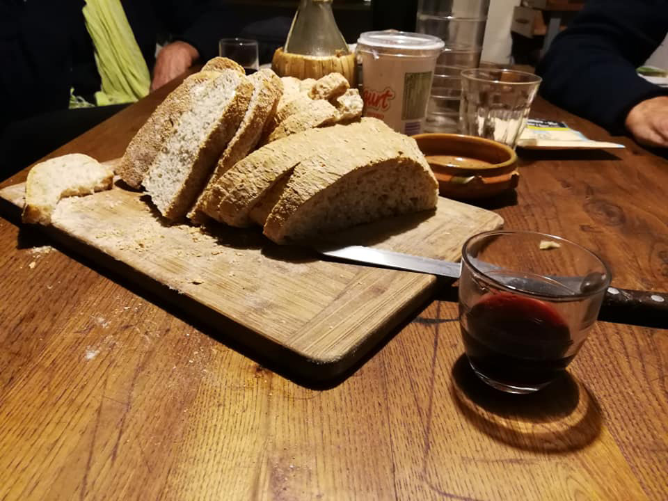 Affettando pane e salame i nostri discorsi, di cui non ricordo nulla (il che la dice lunga sulla loro “profondità”) erano interrotti solo dai ricorrenti rumori di tappo che libera il prezioso nettare. Vino e merenda andavano giù che era un piacere e le risate diventavano sempre più sgangherate. Marco e Andrea fabbricavano continuamente canne che poi venivano fatte girare senza risparmio.