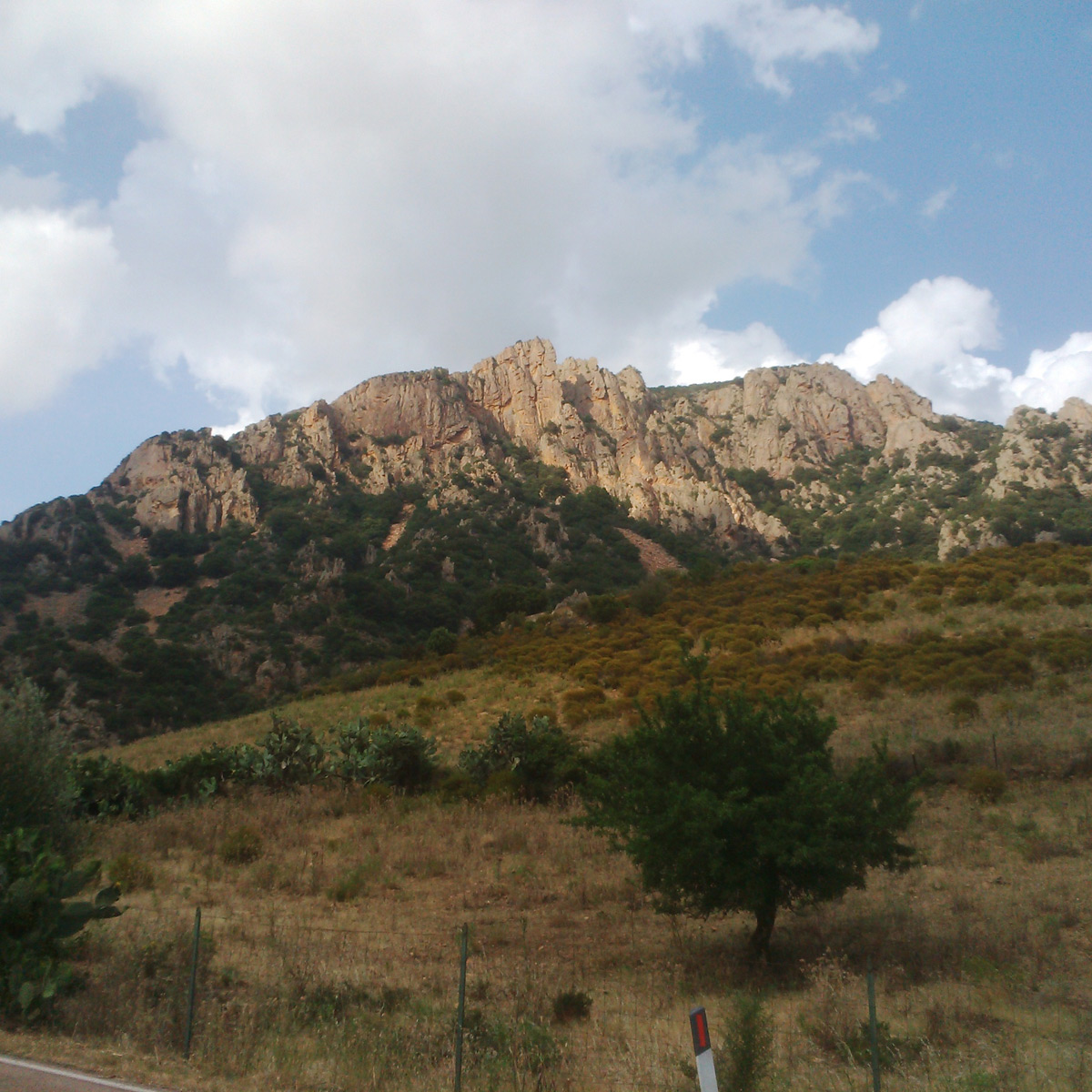 Sempre per la gioia dei nostri ospiti, non poteva mancare la visita di Marco Marrosu, proveniente da Cagliari. E quando c’era Marco era difficile non pensare alle vie nuove. Così il 15 giugno ci avviammo verso Punta Orruvia, una vetta di porfido ben visibile dalla strada che da Lotzorai va a Urzulei, poco più a nord di Punta Giogadorgiu, la struttura dove sono presenti parecchi itinerari sportivi (per esempio Mellosarda). Dalla strada la cresta sud assomiglia a una piccola cresta sul del Salbitschijen (un paragone molto ardito…). Guya e Simona al mare; Mario, Massimo e Giulia preferivano terreni di scalata noti perché ci sospettavano di “cinghialismo”, uno sport nel quale ci reputavano campioni. In effetti, già la salita all’attacco, scrutata in foto e su google earth, non lasciava presagire nulla di buono. Ma noi ci avviammo speranzosi, anche se già era difficile trovare il modo di arrivare al bosco oltre il corso del Riu Oddala (Riu ‘e Gurue) senza far arrabbiare nessun pastore o contadino.