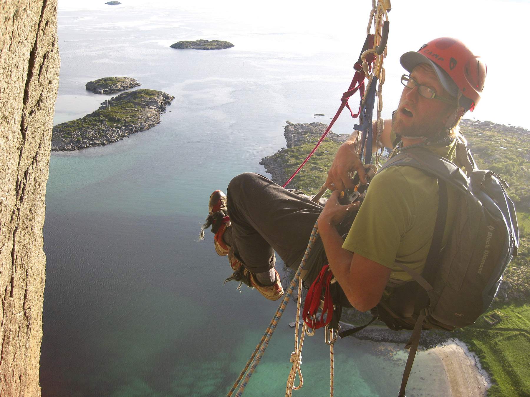Andrew Burr su Man Hands, Lillemola Island, Lofoten, Norvegia. Foto: Rob Pizem.