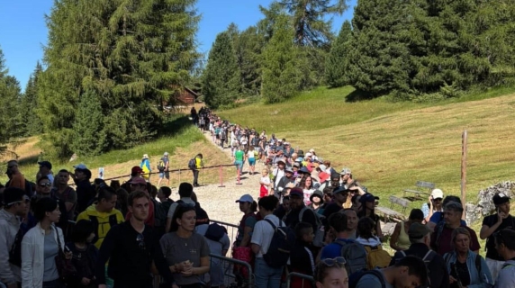 Le immagini hanno fatto il giro del web: centinaia di persone in fila alla stazione intermedia di Furnes per salire sul Seceda, per ore sotto il sole in attesa della funivia. Una scena che ha colto di sorpresa anche i residenti, da tempo abituati a flussi consistenti, ma mai a questo livello. Dopo la recente protesta dei contadini per il passaggio sui prati privati, il dibattito sulla sostenibilità del turismo in quota torna prepotentemente al centro. Armin Lardschneider, assessore al turismo del Comune di Ortisei, conferma: «Quando ho visto quelle immagini pensavo fossero finte: una cosa così non si era mai vista. Abbiamo già avuto diverse riunioni e ne faremo ancora. Litigare tra le parti non serve a nulla, dobbiamo trovare un accordo collettivo. Il caso di martedì rappresenta il non plus ultra».