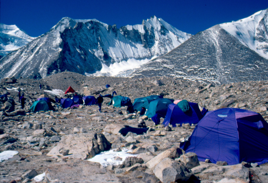 5 aprile. Arriviamo al campo base a 5300 metri con un sole stupendo. La testa batte un po’, ma è più che normale. Riccardo ne risente molto, forse per la sua prima esperienza in quota, ed averlo aiutato a portare lo zaino gli ultimi metri prima del campo base mi fa sentire bene. Il Makalu mi appare sempre più imponente, ma i ricordi nella mia mente incominciano a riemergere come se lo avessi lasciato ieri.