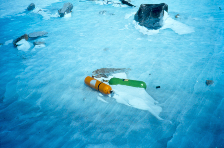 6 aprile. La testa a momenti picchia forte, non ricordavo sensazioni così, comunque non mi preoccupo più di tanto. Una bella sistemata alle tende mi distrae e non mi fa pensare ai dolori. Ricomincia il tran tran del campo base; sveglia con il tè, asciugare il sacco a pelo ed il materassino al sole, ricca colazione, quattro chiacchere, ricerca di aria da respirare, pranzo e così via. Oggi svuotiamo i bidoni e selezioniamo tutto il materiale ed il cibo; un lavoro importante al quale partecipano tutti i componenti della spedizione. La serata è molto fredda e mi basta una tazza di brodo per cena, poi a nanna nel caldo saccopiuma con coperta trapuntata nepalese.