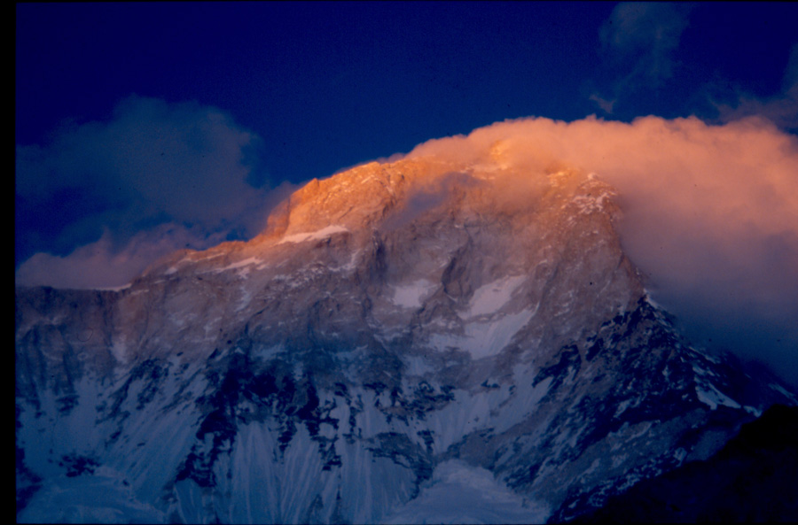Siamo sul versante ovest ed il sole arriva alle 11.15. I primi raggi sembrano portare vita, colore, speranza, ma le slavine non ci danno pace per cui poco dopo l’otto scorre veloce sulle fisse mitragliate dalle scariche di neve. Campo2, campo1, campo base. Sfinimento, delusione, dolce tazza di tè, dolce sedia, comodo tavolo, possibilità di distendere le gambe nel saccopiuma. Tutto è piacevole quaggiù e pensare che poche ore fa eravamo lassù, dominavamo tutto, il campo base sembrava così piccolo e senza importanza. Ed invece eccoci qua; dopo qualche ora le voci dei compagni danno quasi fastidio, sembrano rovinare la pace che si era creata a 7000 metri. Con l’aiuto del raksi (distillato di riso), trangugiato tra una sigaretta e l’altra nella cucina in compagnia di Slauco e degli sherpa, iniziamo a fantasticare e a programmare una salita in stile alpino. A volte la fantasia può diventare realtà.