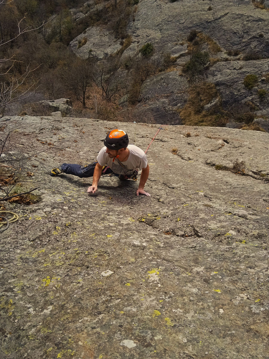 Ma torniamo a noi, raramente propongo di ripetere qualche via, ok, con Chiara è successo, ma non potevo mica dirle “Oh, ho visto una parete, belle fessure muschiate, stupende placche lichenate, forse si sale coi friend, ma forse no. Vieni?”. Ecco, a lei no, ma ai miei amici sì. Non devo neanche dire che sarà una sucata planetaria tra erba, terra, run out e tante altre cose che piacciono probabilmente solo a noi, già lo sanno. Quindi scrivo a Gioele, Tommy ed Ene: “Raga, venerdì ci siete? Nuova via, forse.”. Triplo “sì”, si va.