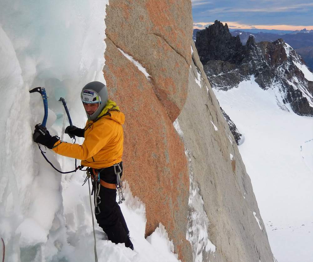 Andò così: il giovane, già campione mondiale di slope style con lo snowboard e figlio d’arte perché nella sua famiglia tutta ci sono stati campioni di sci in ogni specialità, si era scassato malamente un ginocchio e aveva dovuto interrompere il circuito di gare in cui era impegnato per il mondo. Depresso e dolorante se ne stava a casa rintanato e sua madre mi aveva cercato dicendomi di portarlo a fare una cascata di ghiaccio (queste madri sportive, eh?!). Io assolsi il mio dovere professionale notando che il ragazzo se la cavava molto bene pur con un ginocchio imbragato in un ingombrante tutore che, fatto l’avvicinamento, restò alla base della cascata! Scalammo altre volte divertendoci e io non dovevo affatto fare più la guida. Non so se rendo l’idea. E soprattutto suonammo insieme qualche volta perché Markino è pure un talento musicale con vari strumenti. Cosa volere di meglio? Uno così poteva solo diventare un malato di Patagonia senza difficoltà e così è stato.