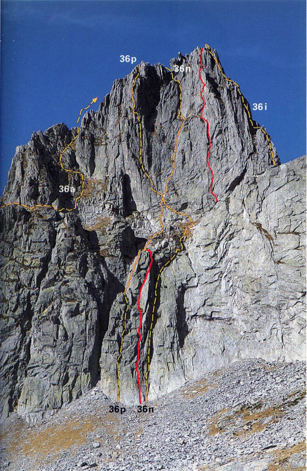 Bello che, nelle conosciutissime Alpi, esistessero ancora delle catene-gruppi quasi allo stato selvaggio. Lì così era negli ’80, a giudicare dai racconti e dall’assenza di ripetizioni fra le prime ascensioni (dei ’30 al più tardi, spesso anche prima) e le ripetizioni citate. Chissà se la wilderness dei luoghi è rimasta tale? L’esistenza di vie nuove (cioè successiva a queste giornata) viene qua e là citata, ma il punto è se la cosa sia “degenerata” o no…