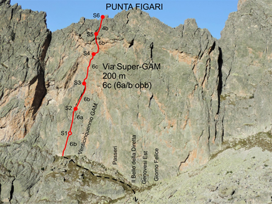 La via Super-Gam, aperta nel 1981 sempre in compagnia di Guido, è stata invece recuperata e riattrezzata completamente a spit nel 2020 da me, Ciano Orsi, Ernesto e Walter Galizio. Un itinerario interessante e di soddisfazione, che ora viene ripetuto ogni anno da molte cordate, dopo circa 40 anni di oblio!