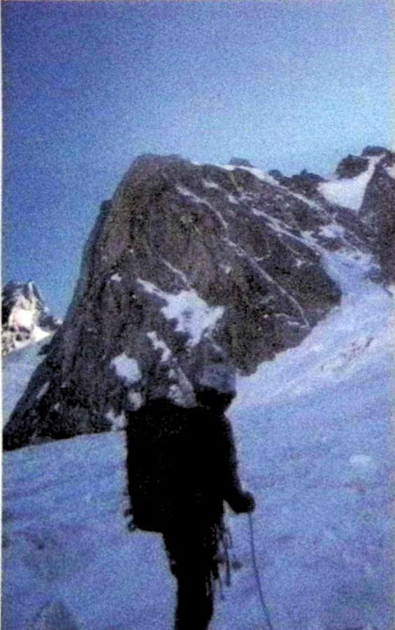 Simili difficoltà d’ordine glaciale incontrate in questa grandiosa ascensione furono le prime ad essere affrontate prima dell’avvento delle nuove attrezzature e tecniche da ghiaccio (piolet traction).