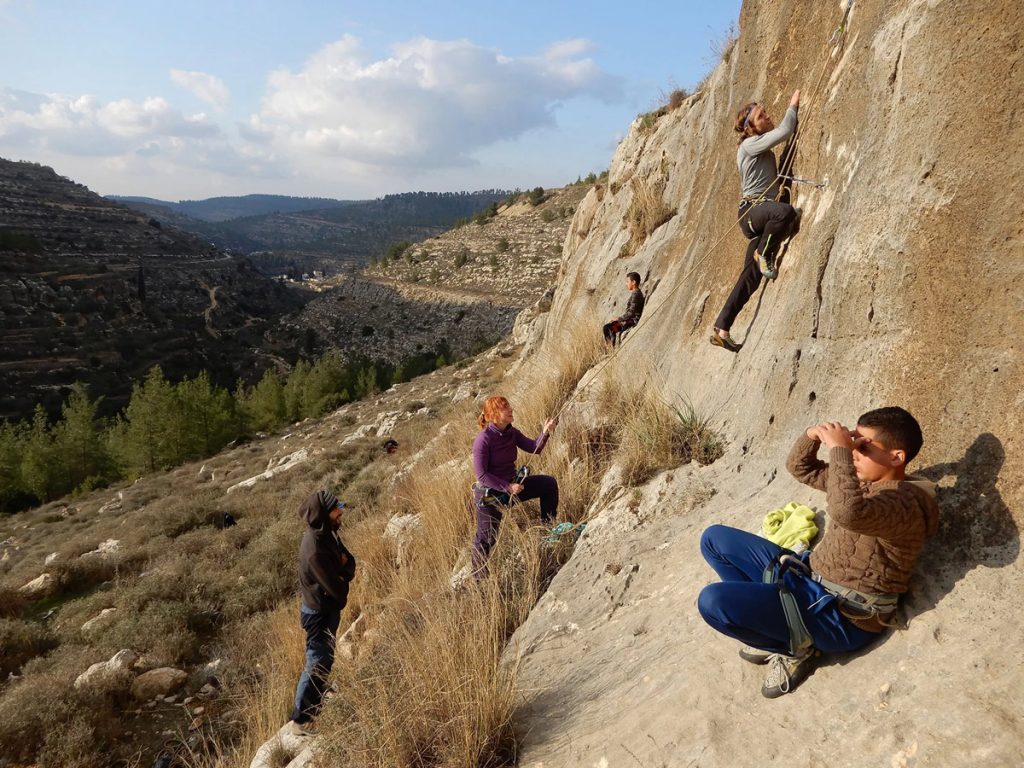 Ora tutto questo per dirvi che se non lo avete fatto, potete vedere Resistance Climbing gratuitamente sulla piattaforma di Reel Rock o ad altre proiezioni che sto cercando di organizzare e che il progetto si è esteso, ad esempio potrò grazie alla Giga Resoling di Roma offrire la risuolatura delle scarpette dei ragazzi della Palestine Climbing Association. La sfida più difficile sarà l’organizzazione (a causa dei visti) e la copertura delle spese del viaggio di Hiba Shaheen e Tawfik Najada in Italia (rispettivamente presidentessa e vice della Palestine Climbing Association) per trovare partner pronti (ed in grado – FASI ci sei?) a supportare l’esclusione di Israele dalle competizioni di arrampicata sportiva per comportamento anti sportivo dopo aver illegalmente occupato falesie in Territori Palestinesi.