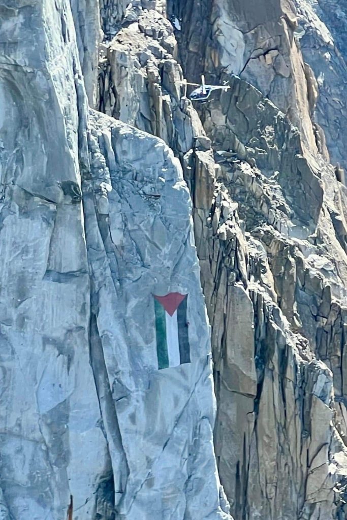Chi non riesce ad obliterare la propria umanità vuole testimoniare anche attraverso le sue passioni: l’amico Alessio Zangrilli che chioda ad Acuto Free Palestine (6a); la guida alpina Francesco Salvaterra con Marco Pellegrini apre Palestina libera nelle Dolomiti di Brenta; sempre una guida alpina, Lorenzo Trento, con Eloisa Izzo e Simone Calabrese, apre Dalla riva al mare nel Gruppo del Gran Sasso d’Italia; le guide di Chamonix espongono sulla verticale parete del Petit Dru il vessillo palestinese; ed Hervé Barmasse espone una bandiera della Palestina sull’uscio di casa, di fronte al Cervino. Ma gli episodi di questo genere ormai quasi non si contano più.