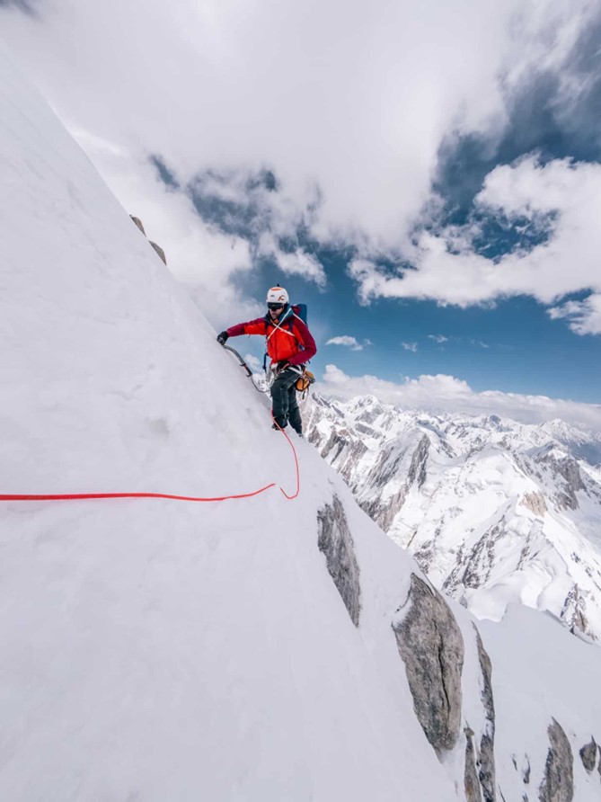È vero che abbiamo lanciato il progetto, ma quando siamo arrivati al campo base, vedendo la portata della cresta e cosa c’era da fare, all’inizio ho avuto qualche dubbio. Ero un po’ stressato perché pensavo di essermi lasciato trasportare un po’. Lui non aveva l’esperienza necessaria per farlo, ed era motivato. Ma non se ne rendeva conto; non aveva paura di andare lassù, nessuno stress.