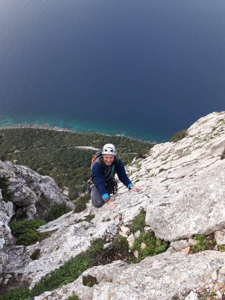 Al bell’articolo di Giuliano (non avrei mai immaginato che ci fossero tante vie sulla parete sud-est) è stata per tanti anni la mia meta preferita anche perchè la parete, è la prima ad andare in ombra. Ho salito tante vie (a questo punto non so se ripetute o aperte, esplorato alcune grotte che si aprono in parete (alcune con piccole risorgenze d’acqua dolce) e soprattutto ci siamo divertiti come dei matti a sfidarci nel lungo traverso appena sopra il livello del mare…roccia stupenda, a tratti appigliata e facile dei punti impossibili e un’acqua profonda e limpida dove precipitare
