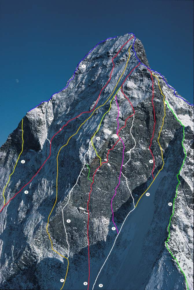 5 = via Direttissima (via Barmasse-Cazzanelli-De Tuoni) (1983)