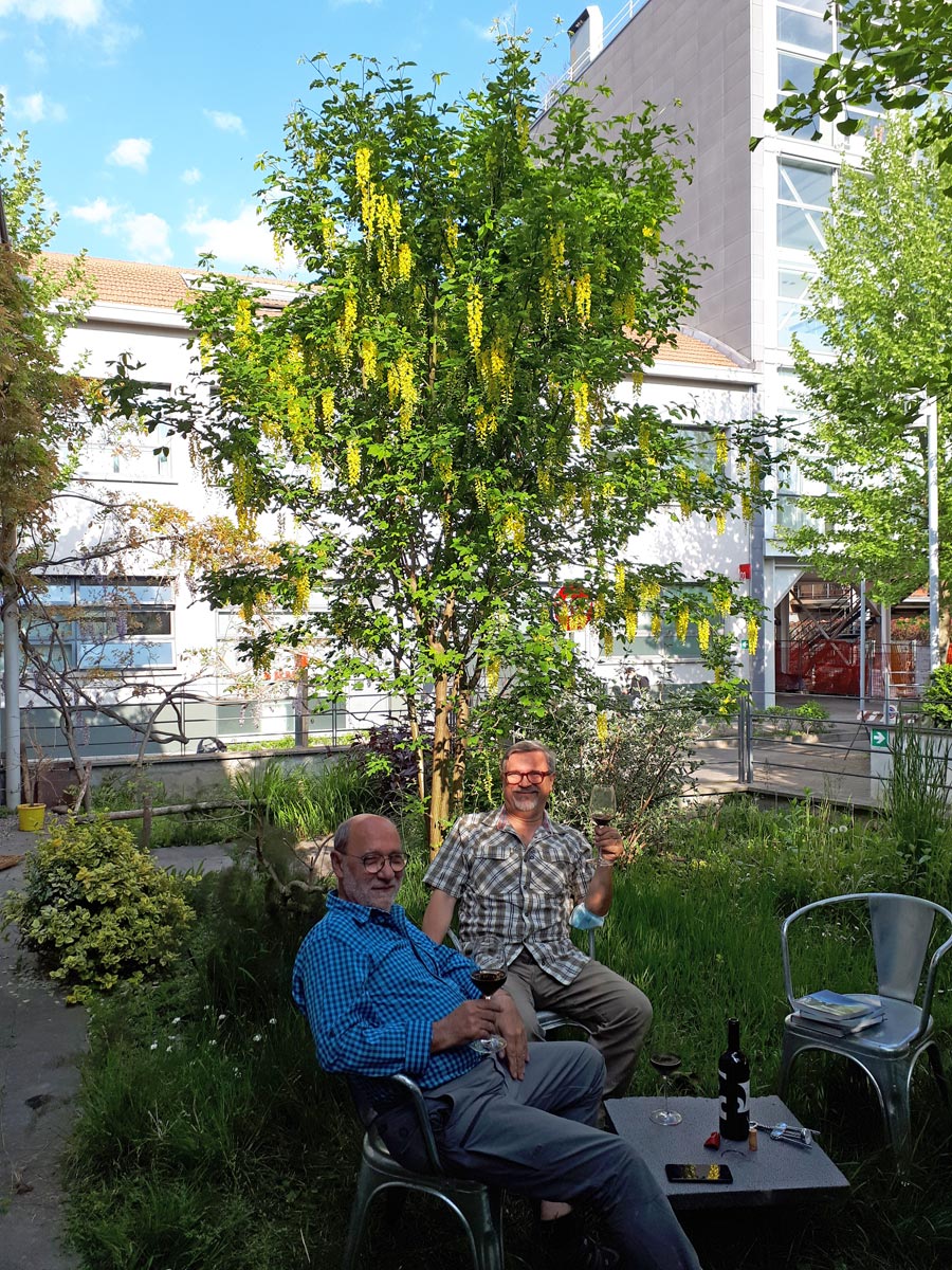 Questo sacrificio piacque a Salva, che dunque accettò di partire da Brentino alle 17. La bisboccia perciò continuò fino a quell’ora. Il livello alcolico era tale da suggerire l’immediata interruzione di ulteriori bevande, dunque fummo puntuali, non senza aver prima trangugiato il bicchierino di grappa speciale offerto dalla casa. Pur essendo la Festa della Repubblica, godemmo di un ritorno in tempi decenti fino alle porte di Milano. Lì il traffico diventò pesante, ma alle ore 19.15 riuscimmo comunque a scaricare Salvatore a casa sua. Mentre ripercorrevamo in senso contrario le strade appena fatte per poi puntare a nord verso via Teodosio, mi venne l’idea di abbattere lo strisciante nervosismo con il miraggio di raggiungere il mitico Bar Basso di via Plinio e lì concederci in santa pace un bel Negroni a testa. Detto fatto, posteggiata l’auto nelle vicinanze, ci avvicinammo al bar. Data l’ora era pieno di gente che faceva l’aperitivo, non c’era una sedia disponibile, né dentro né fuori sul marciapiede. La gente festeggiava la bella serata e la provvisoria fine del CoVid. Ci accontentammo di ordinare al banco. Con nostro stupore misto a grande gioia ci furono serviti due enormi calici di Negroni, praticamente una doppia dose, forse quasi tripla. La qualità dell’esecuzione dei drink era pari all’elegante presentazione, davvero memorabile. Bevuta anche l’ultima goccia, ormai di solo ghiaccio, malvolentieri lasciammo quel paradiso e guidai euforico fino a casa di Matteo. Da lì iniziò la faticosa e solitaria trasferta fino a casa mia, sui ritmi di Virgin Radio. Ma ne era valsa la pena.