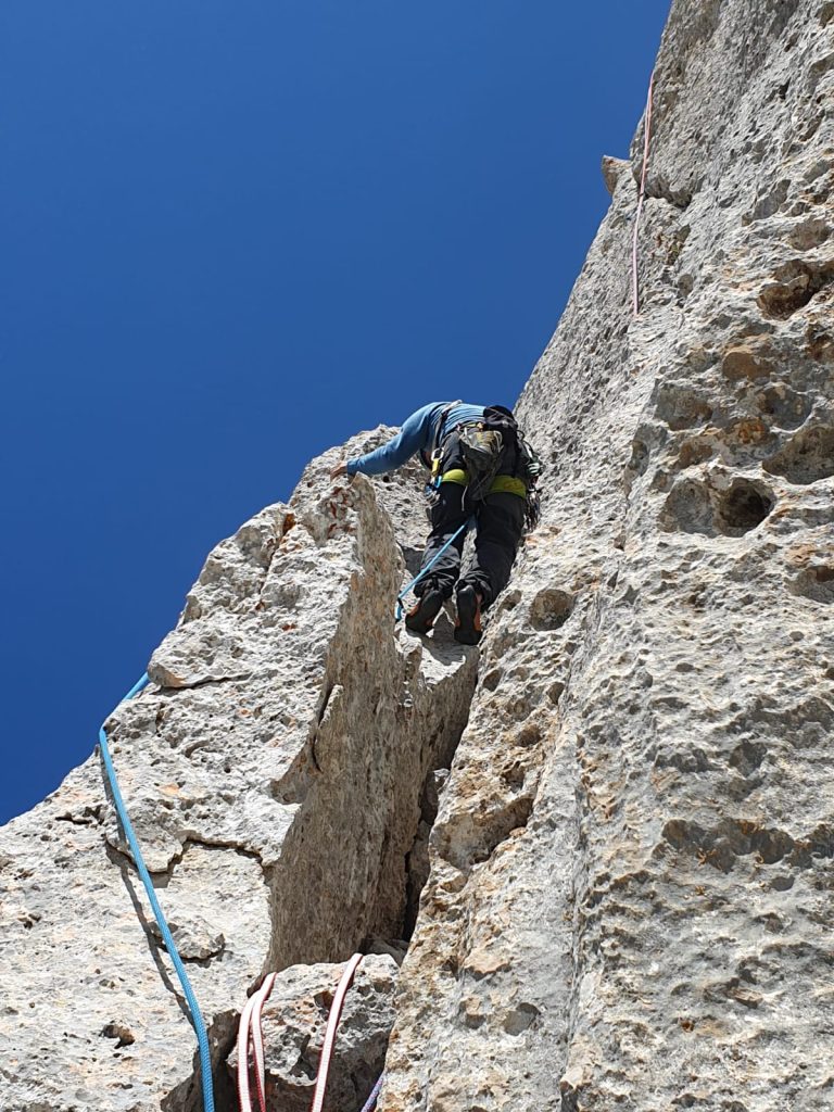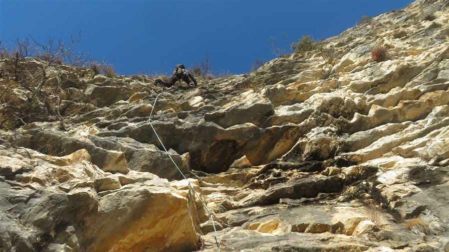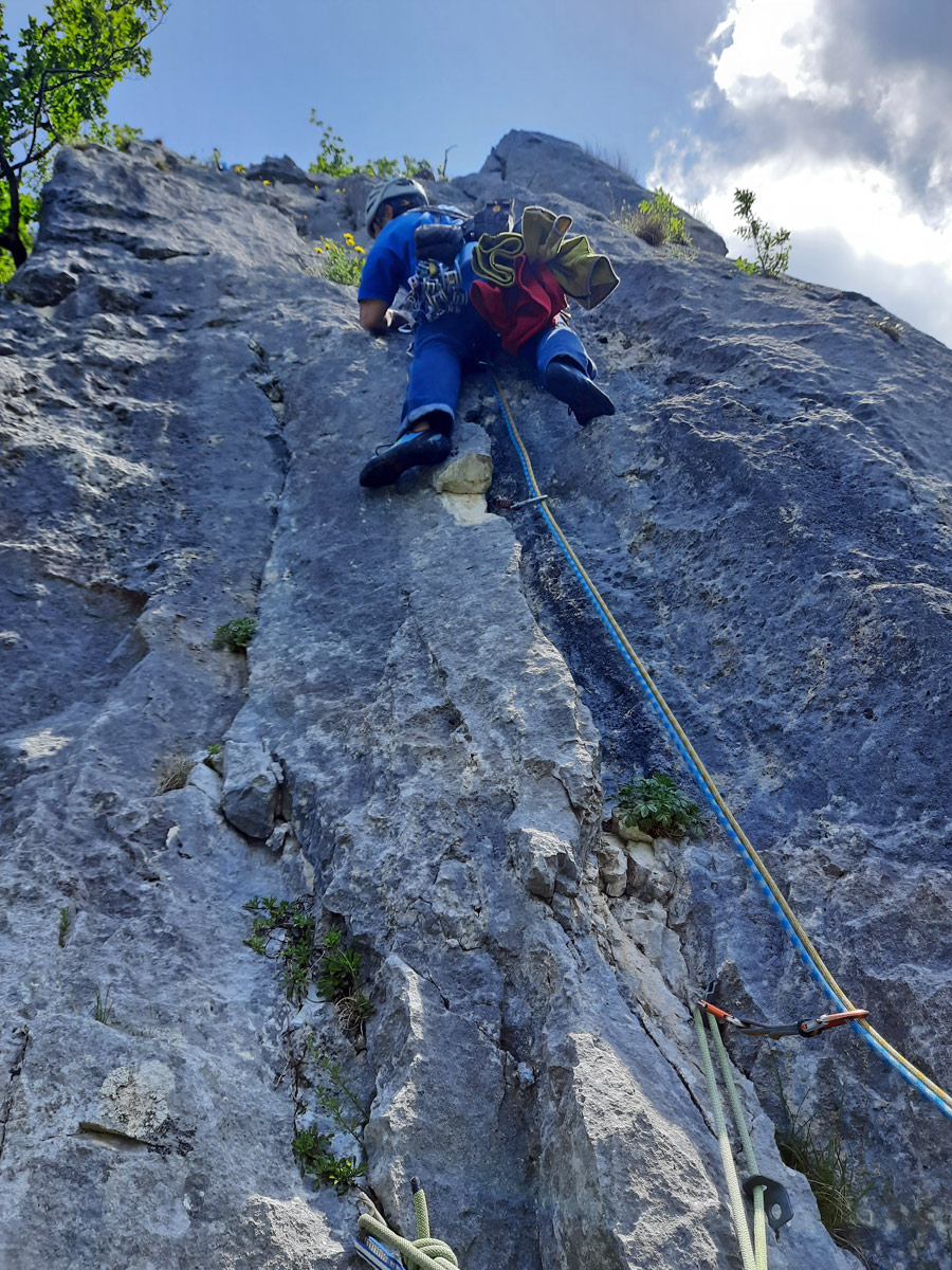 In primavera le uscite arrampicatorie in falesia furono determinate, oltre che dal solito meteo, dai colori giallo, arancio e rosso che le varie amministrazioni, oscillanti tra lo stupido rigore e le esigenze della realtà, imponevano ai cittadini sulla falsariga della mutevole diffusione del CoVid. Oltre al numero di morti settimanali, ricordo viaggi bendati, rischiose esposizioni ai controlli stradali, scuse preparate per discutere un po’ con l’autorità, oltre alla minuziosa modulistica delle deroghe speciali.