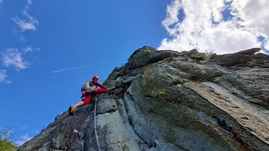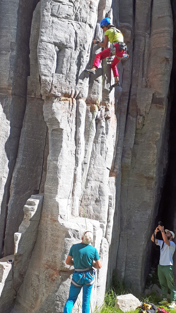 Considerata la vicinanza con le strutture di Balmanolesca, di Yosesigo e soprattutto di Cadarese, pensai subito all’arrampicata trad in fessura. Considerai che Anna Torretta, guida alpina di grande esperienza, avrebbe potuto dare una dimostrazione di arrampicata tradizionale assieme agli scalatori ossolani che avevano contribuito allo sviluppo di quella specialità.